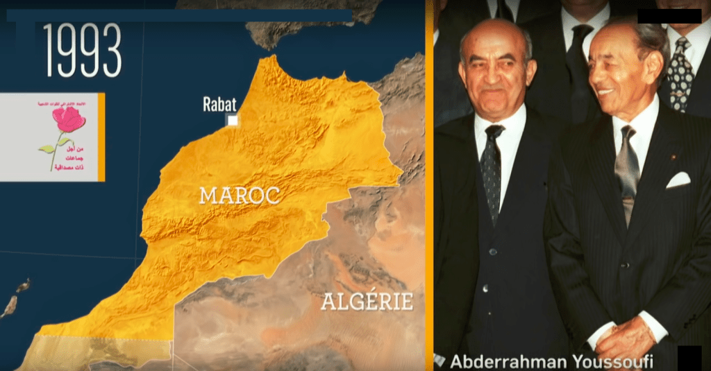 Vers 1990, Hassan II décide l’ouverture du système politique aux partis d’opposition islamiste et socialiste. En 93, il nomme un Premier ministre socialiste, mais sans remettre en cause son pouvoir absolu et divin qui reste le pilier du système marocain.