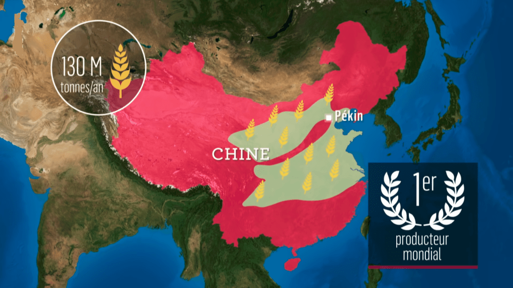 Pour terminer, intéressons-nous à la Chine. Avec 130 millions de tonnes par an, c’est le premier producteur mondial de blé. Le projet de puissance de Xi Jinping exige de sécuriser l’approvisionnement alimentaire. Mais cet objectif d’autosuffisance est de plus en plus inatteignable. En cause, l’explosion de consommation de blé des Chinois, dont le régime alimentaire s’est occidentalisé.