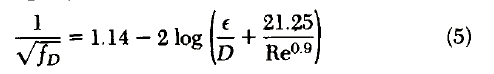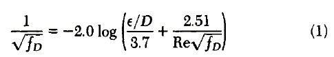 The basis of the Colebrook function may be briefly outlined. Von Kerman had shown that, for completely turbulent flow in rough pipes, the expression