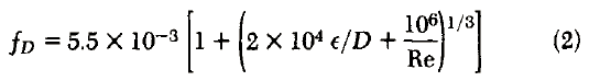 A single correlating equation relates pipe friction loss to Reynolds number and surface roughness for laminar, transitional and turbulent flow alike, thus making fluid-flow calculation simpler.