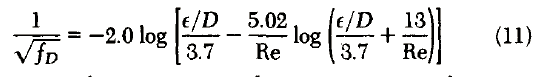 Eq. (13) is essentially equivalent to the expression commonly used to construct the complete turbulent regime of the friction-factor chart that is reproduced in most textbooks and handbooks.