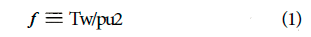 The friction factor considered herein is defined in terms of the shear stress on the pipe wall, as follows: