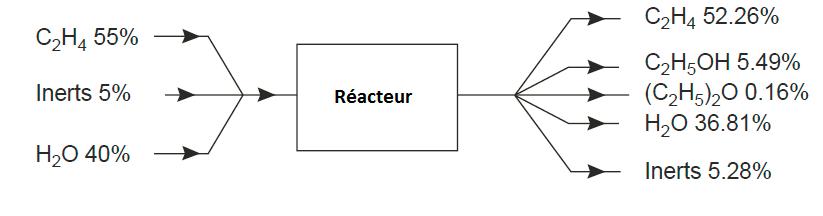 Remarque: Rendement global sur éthylène = (200 / (113,8 + 95,3)). 100 = 96 pour cent