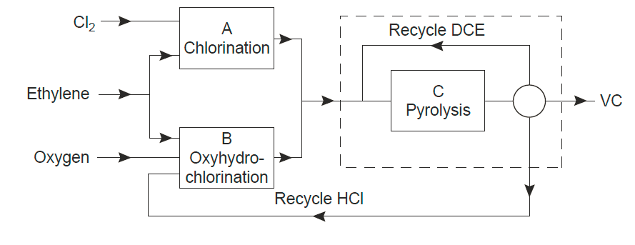 chlorure de vinyle à partir d’éthylène, de chlore et d’oxygène.