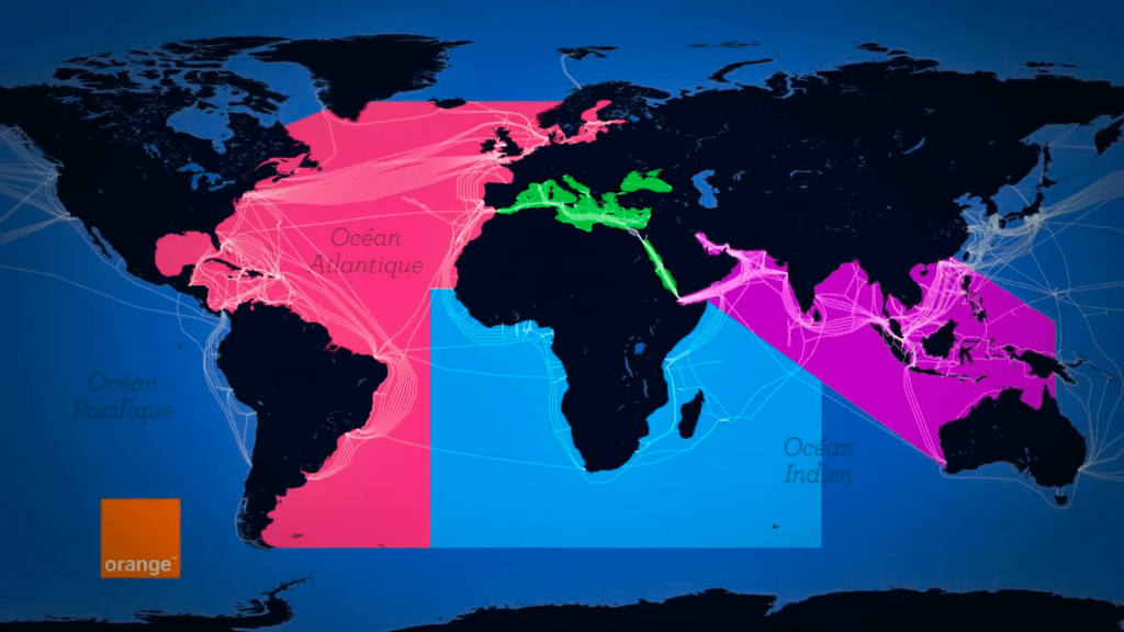 Des infrastructures dans le ciel avec les satellites (encore que vous allez voir que dans cette affaire, ils ne jouent qu’un rôle infime), des infrastructures sur terre et surtout des infrastructures sous la mer et c’est ce que nous allons voir, des kilomètres de câbles enfouis au fond des océans qui permettent des communications ultra rapides entre les continents, nous rendent aussi potentiellement très vulnérables et génèrent des guerres d’influence, des bagarres commerciales et géopolitiques (vingt mille lieues sous les mers).