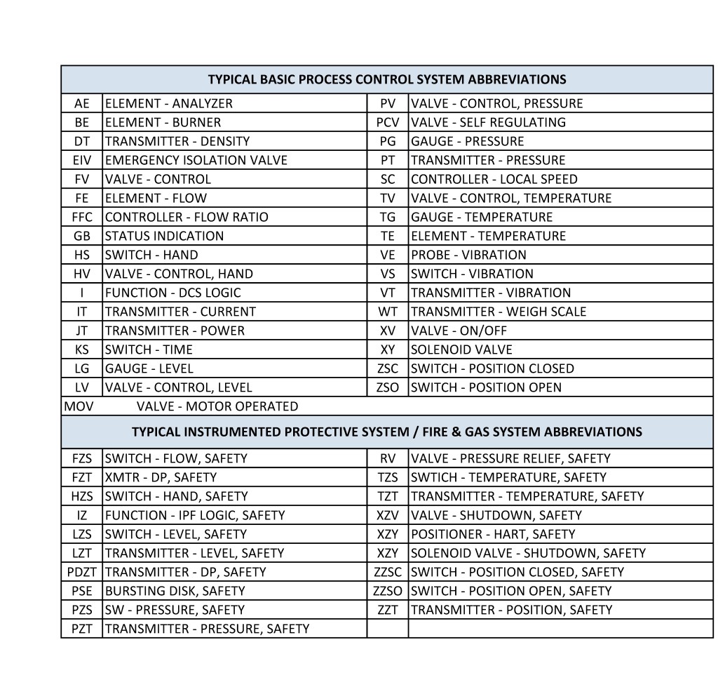 Bien sûr, l’utilisateur doit documenter clairement les significations spécifiées sur la feuille de légende P&ID du site, et ces significations doivent être maintenues, sans ambiguïté ni changement, pour l’ensemble de l’installation ou, idéalement, pour toute l’entreprise. Le tableau de la feuille de légende peut ensuite être modifié pour incorporer les désignations de lettres attribuées, ou même définir spécifiquement des combinaisons de lettres acceptables ou standard pour l’installation.